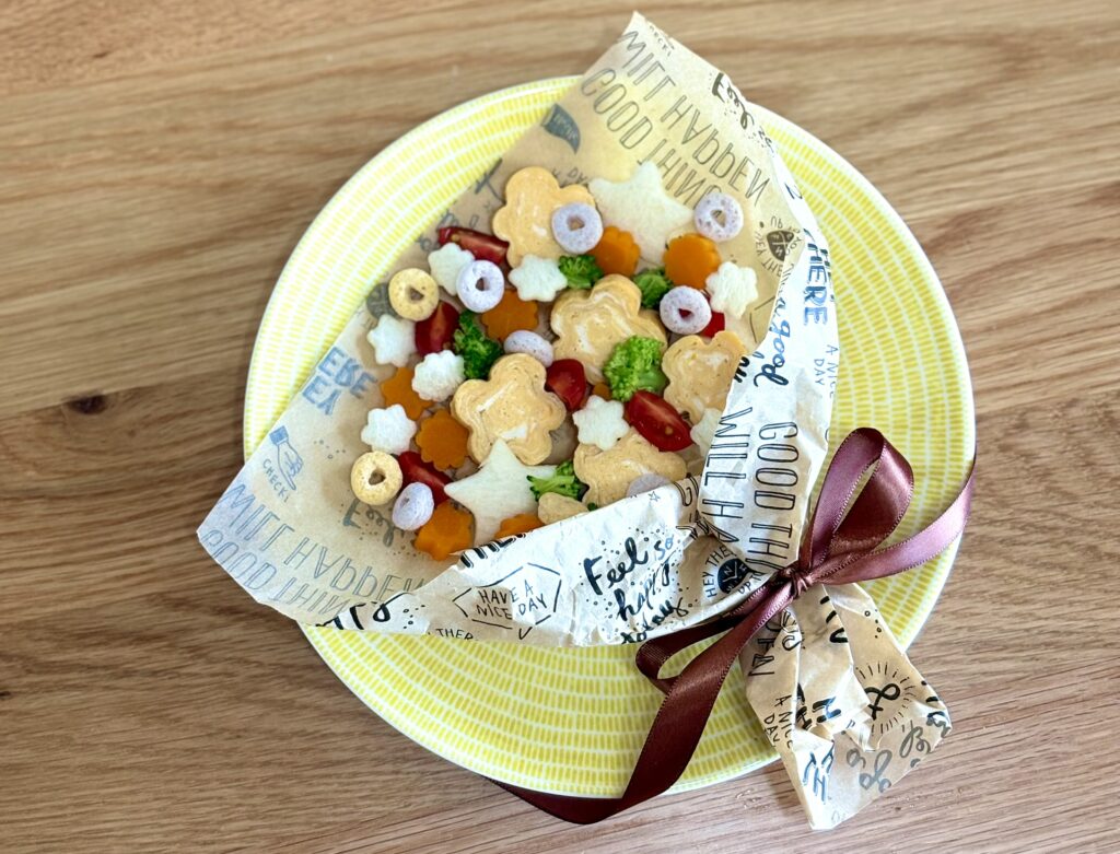 なので、本人の好きなものベースで簡単につくれて、食べてもらえなくてもダメージが少ないハレの日ごはんをいろいろ探し、花束プレートをつくりました。