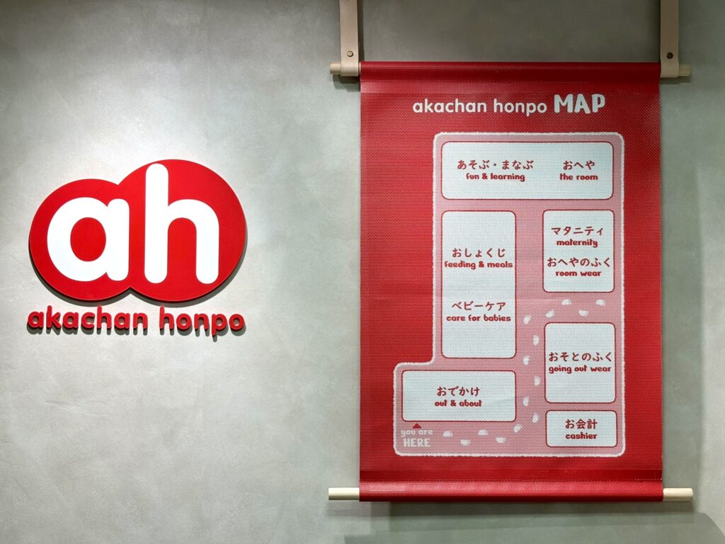 書店やスタバがある池袋東武7階、書店の反対側がアカチャンホンポ。店内はこんなレイアウトです。