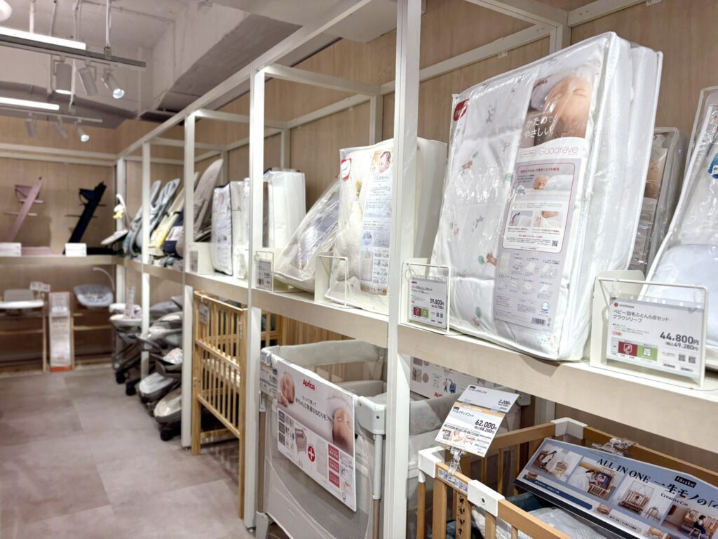 百貨店内の店舗でありながら、そんなときにもだいたいの買い物が済ませられそうなほど。1歳以降の子どもよりも、妊娠~低月齢期に力を入れた品ぞろえだと思いました。