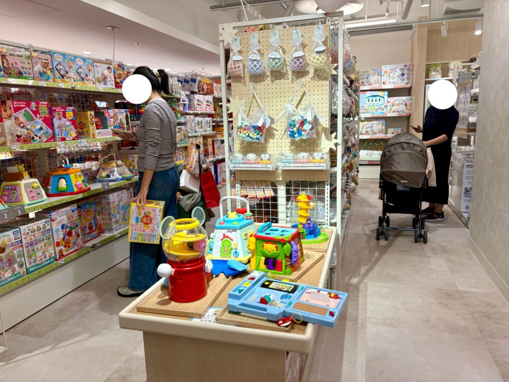 1~2歳くらいまではわざわざおもちゃ屋さんに行かなくても、離乳食などを買うついでにここをのぞくだけで満足できるかもしれません。